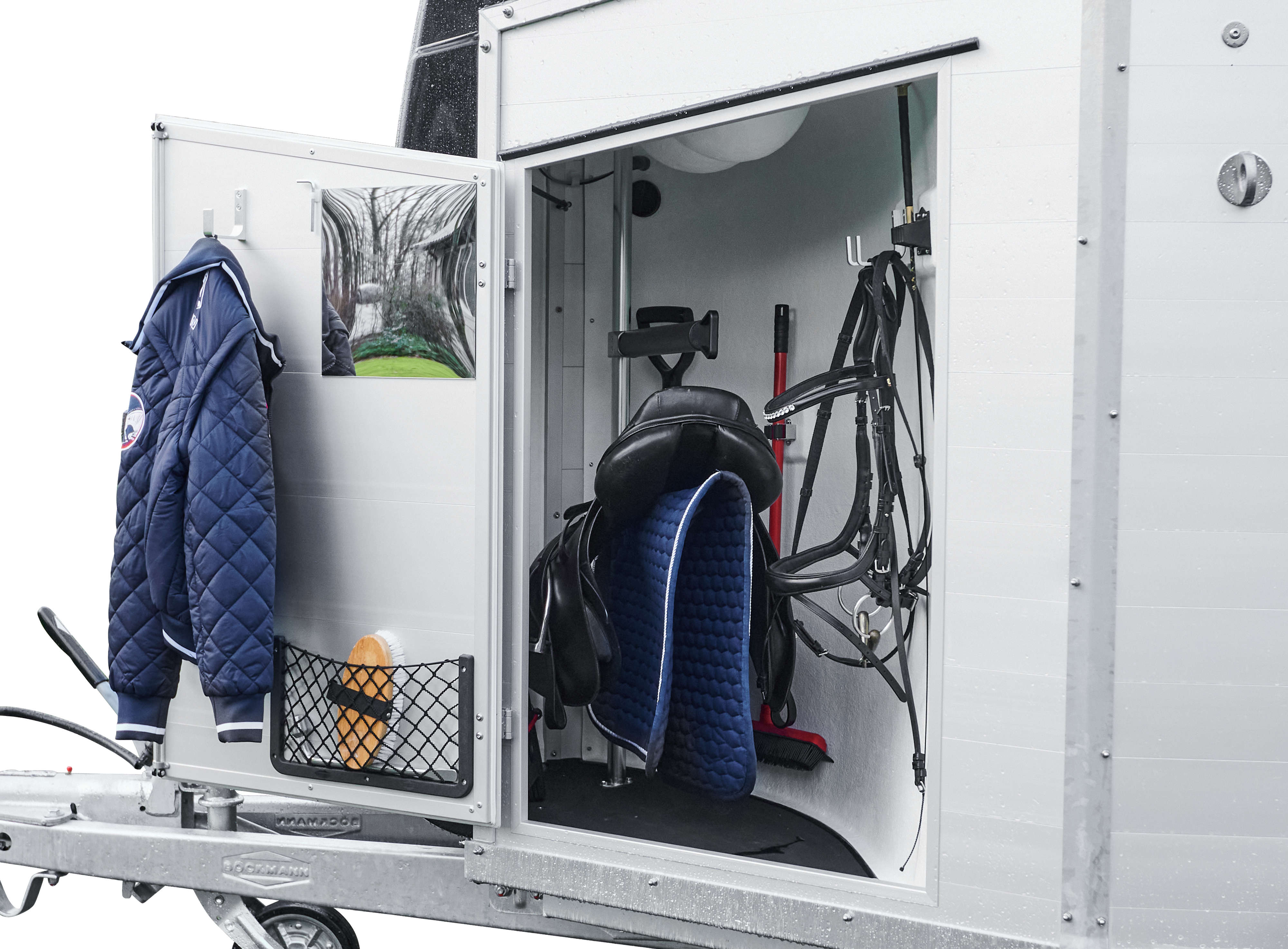 - Sadelskab med sadelholder og opbevaringshylde