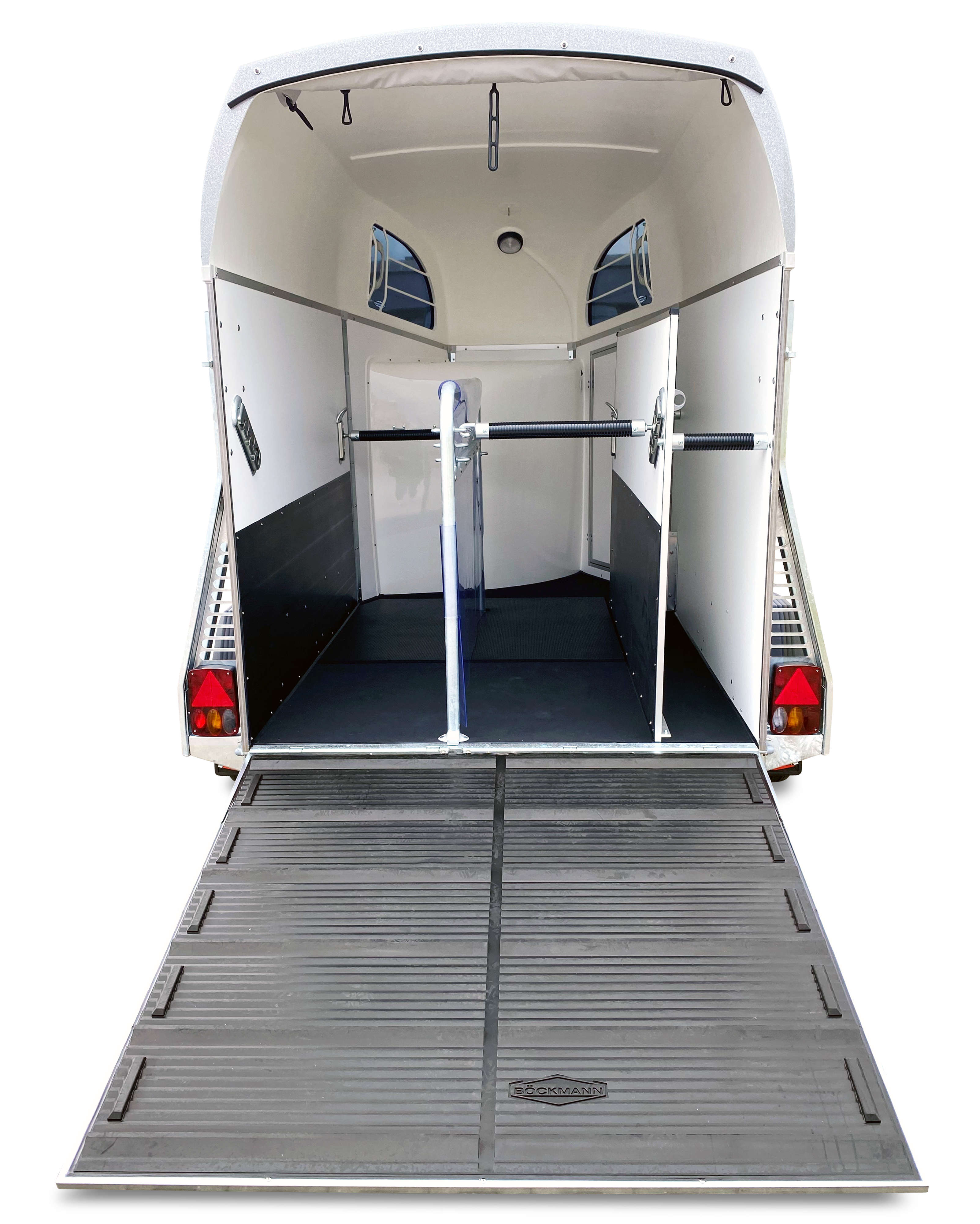 - Sikkerhedsboksstangssystem (15cm justerbar foran for små heste)