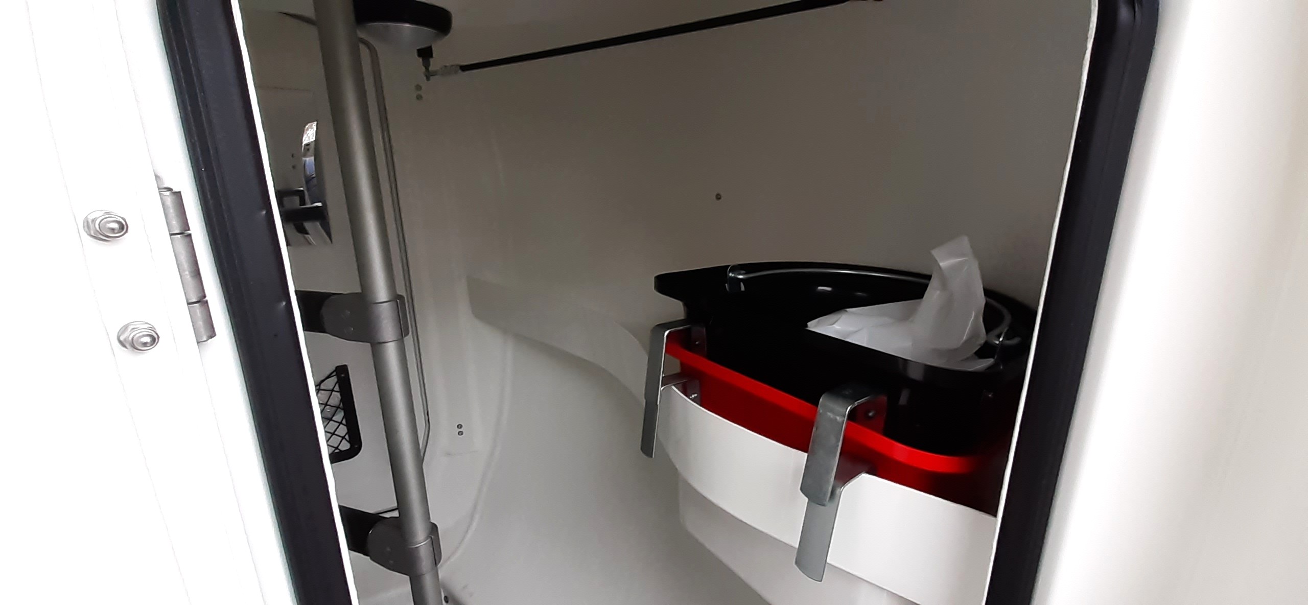 - Midterstolpe / skillevæg, svingbar for og bag, med polstring
