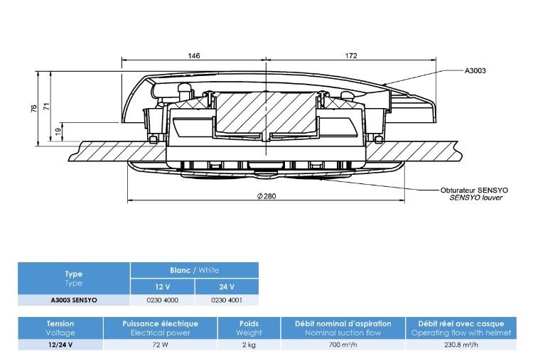 Ventilator SlimAir 12V Hul Ø202 IP68 varenummer : 3208