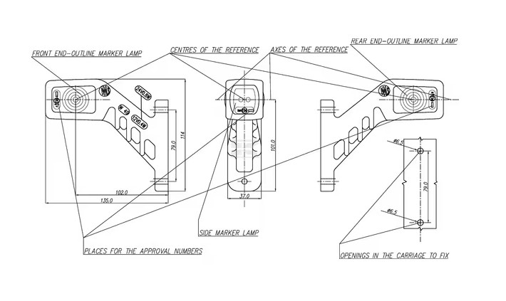 - Farver: Rød, hvid og orange – markerer for- og baglys samt sidelys i én enhed